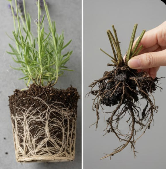 ラベンダーの根は、たくさんの酸素を必要とします。しかし、水のやりすぎや水はけの悪い土の状態が続くと、根が呼吸できずに窒息してしまいます。専門的な話をすると、酸欠になった根は「嫌気呼吸」という状態になり、アルコールなどの有害物質を出して自分の細胞を壊してしまうのです。これが根腐れの正体です。