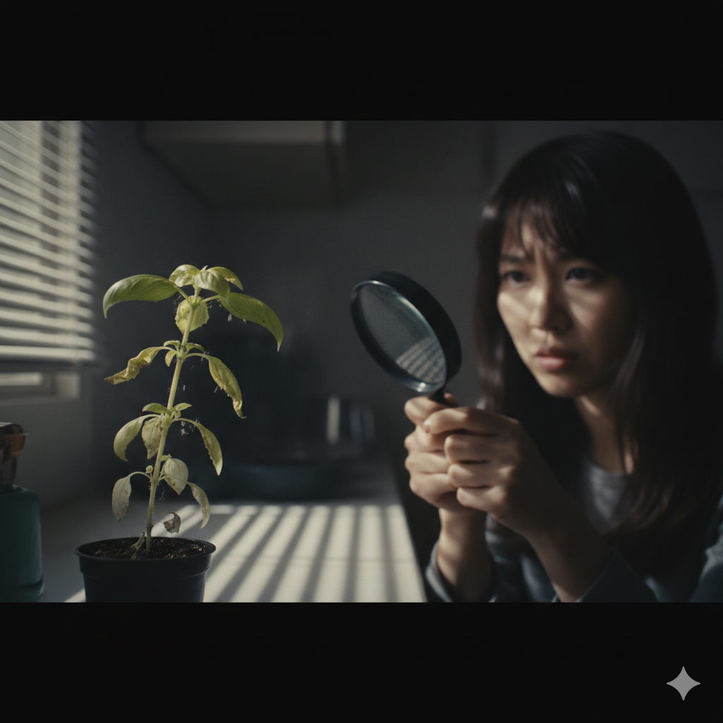 バジルは本来、太陽の光を好みますが、室内では窓ガラス越しの日光しか得られず、光量が不足しがちです。光が足りないと、植物は光を求めてひょろひょろと間延びする「徒長(とちょう)」状態となり、株全体が弱々しく育ってしまいます。抵抗力を失った軟弱なバジルは、害虫にとって格好のターゲットとなるのです。